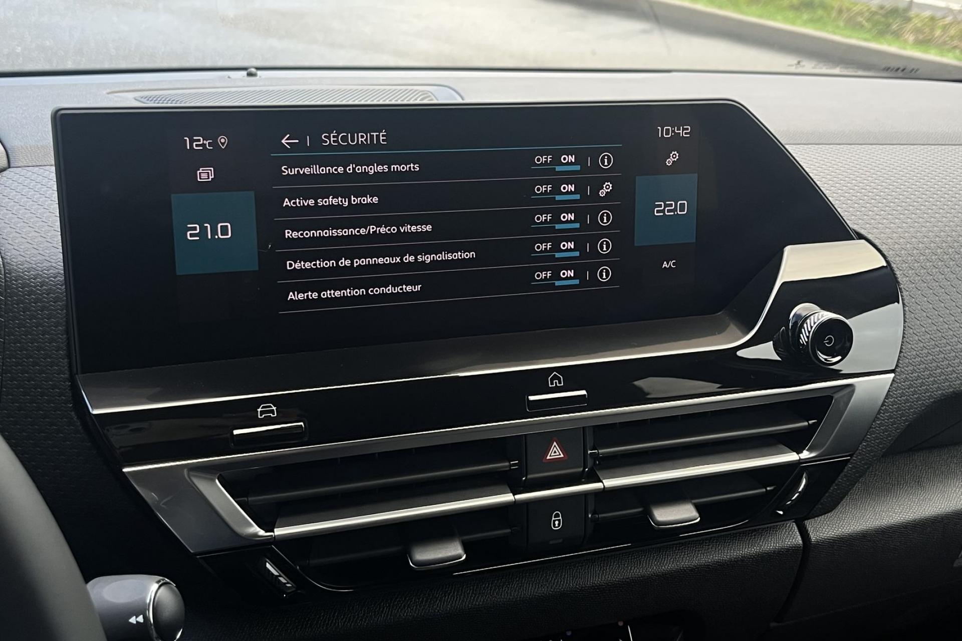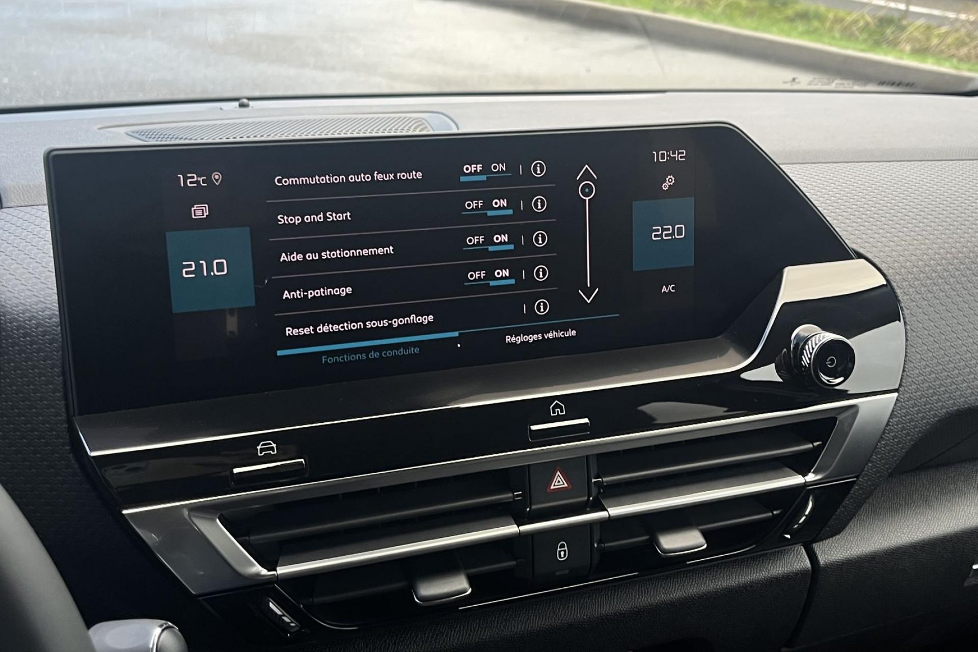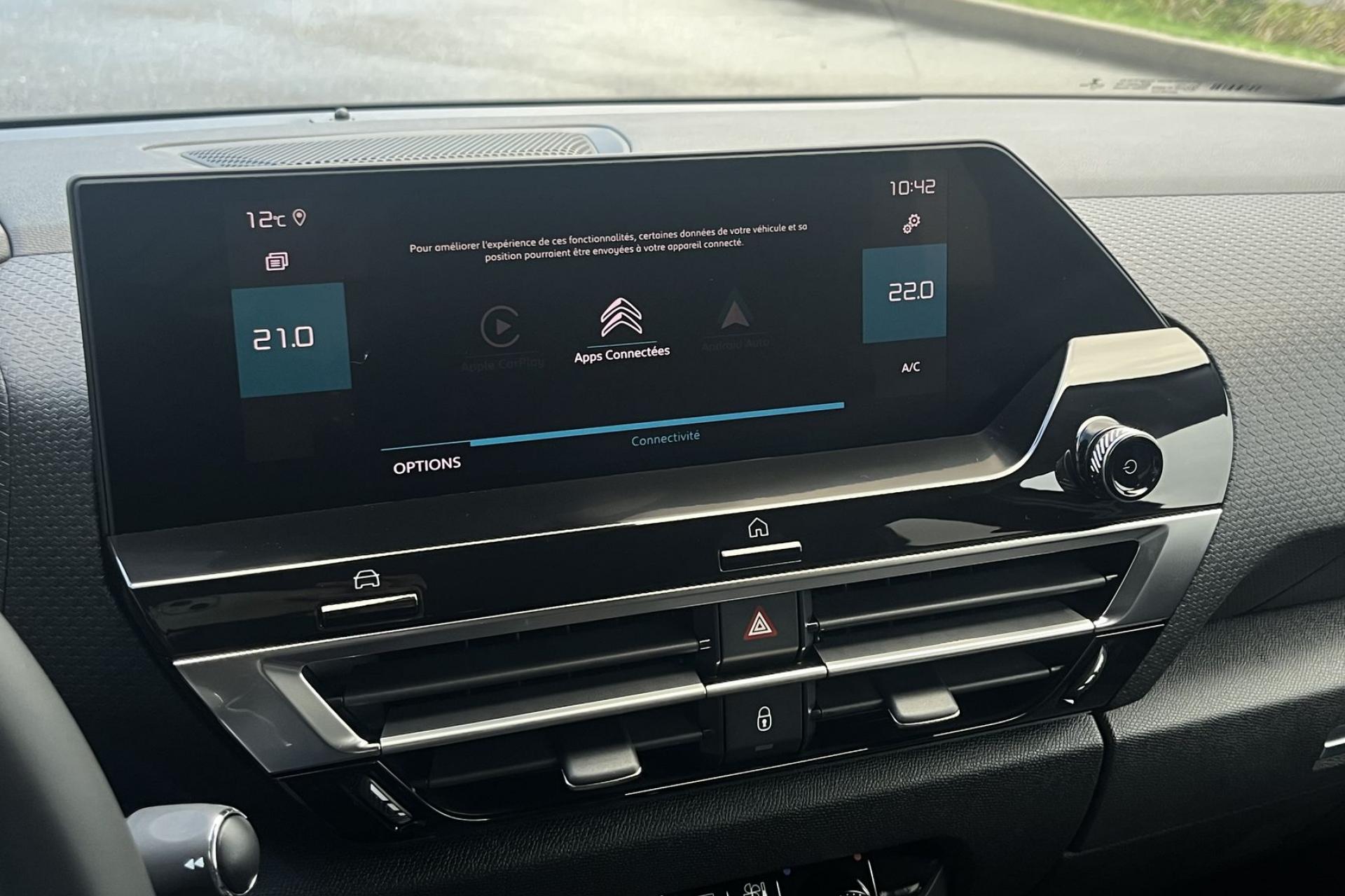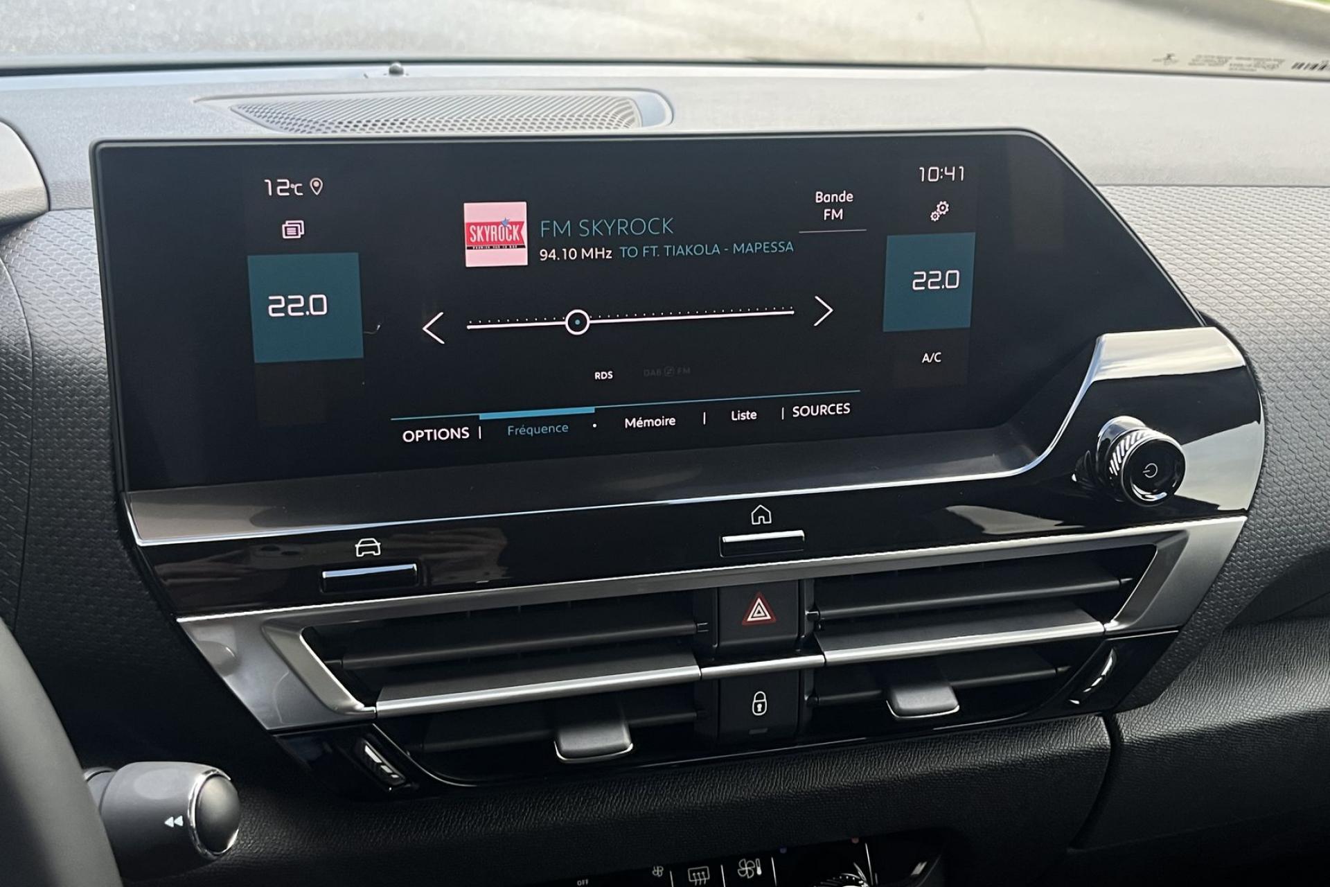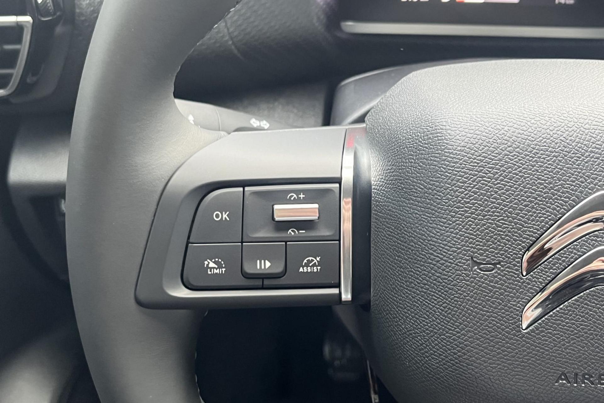 Sellerie Tissu Cuir Ambiance Metropolitan Greyécran tactileAccès et démarrage mains libresaffichage tête hauteaide au démarrage en penteAide au stationnement avant et arrièreAlerte active de franchissement involontaire de ligneAlerte Risque Collisionallumage automatique des feuxAntibrouillard avantApple CarPlay et Android autoAssistance au freinage d’urgence caméra de reculCaméra de recul avec Top Rear Visionclimatisation automatiqueCommutation automatique des feux de routedétecteur de pluieFrein de stationnement électriqueGPSjantes alu 18 poucesLève-vitres électriqueslimiteur de vitessenavigation EuropeProjecteurs LEDrégulateur de vitesseRétroviseur intérieur électrochromerétroviseurs degivrantsrétroviseurs rabattables éléctriquements Radio DABReconnaissance des panneaux de vitesse siège conducteur réglable en hauteurSurveillance d’angle mortSuspensions Citroën Advanced Comforttéléphone bluetooth